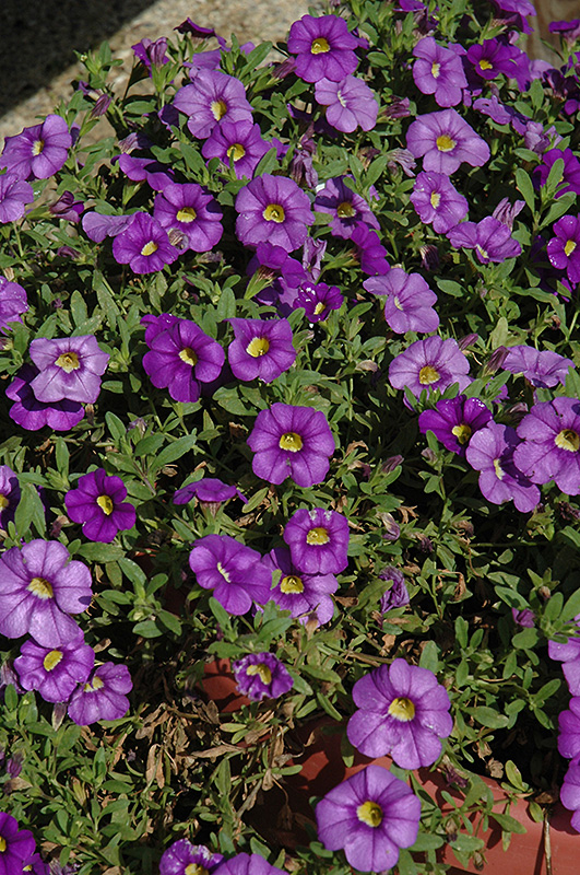 Noa® Mega Violet Calibrachoa is a fine choice for the garden, but it is also a good selection for planting in outdoor containers and hanging baskets. Because of its trailing habit of growth, it is ideally suited for use as a 'spiller' in the 'spiller-thriller-filler' container combination; plant it near the edges where it can spill gracefully over the pot. Note that when growing plants in outdoor containers and baskets, they may require more frequent waterings than they would in the yard or garden.