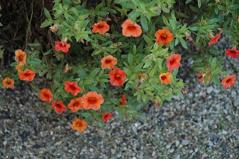 Noa® Tangerine Calibrachoa will grow to be about 8 inches tall at maturity, with a spread of 12 inches. When grown in masses or used as a bedding plant, individual plants should be spaced approximately 8 inches apart. Its foliage tends to remain low and dense right to the ground. This fast-growing annual will normally live for one full growing season, needing replacement the following year.