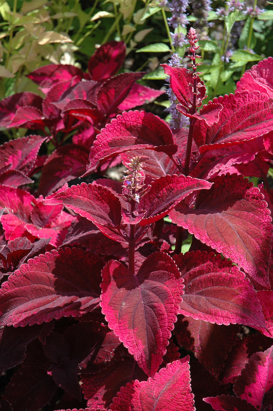 Mariposa Coleus is a fine choice for the garden, but it is also a good selection for planting in outdoor containers and hanging baskets. With its upright habit of growth, it is best suited for use as a 'thriller' in the 'spiller-thriller-filler' container combination; plant it near the center of the pot, surrounded by smaller plants and those that spill over the edges. It is even sizeable enough that it can be grown alone in a suitable container. Note that when growing plants in outdoor containers and baskets, they may require more frequent waterings than they would in the yard or garden.