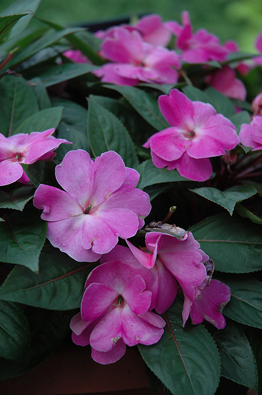 Celebrette Orchid New Guinea Impatiens is a fine choice for the garden, but it is also a good selection for planting in outdoor containers and hanging baskets. It is often used as a 'filler' in the 'spiller-thriller-filler' container combination, providing a mass of flowers against which the thriller plants stand out. Note that when growing plants in outdoor containers and baskets, they may require more frequent waterings than they would in the yard or garden.
