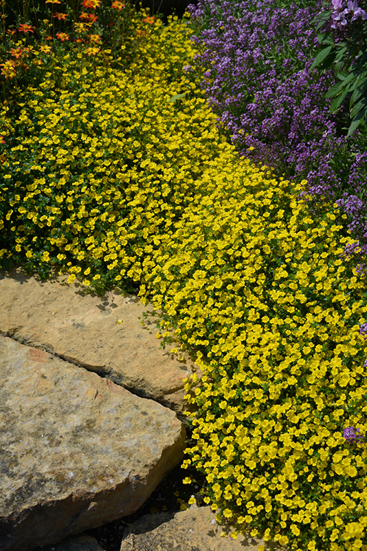 A stunning accent groundcover producing volumes of brilliant yellow flowers from mid-summer until first frost; perfect for rockeries, or spilling from containers; blooms steadily through mid-summer heat