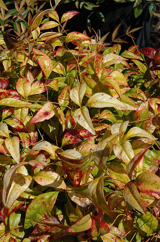 Nana Purpurea Nandina is primarily valued in the garden for its interestingly mounded form. It has attractive red-spotted green foliage which emerges purple in spring. The narrow compound leaves are highly ornamental and turn an outstanding burgundy in the fall, which persists throughout the winter.