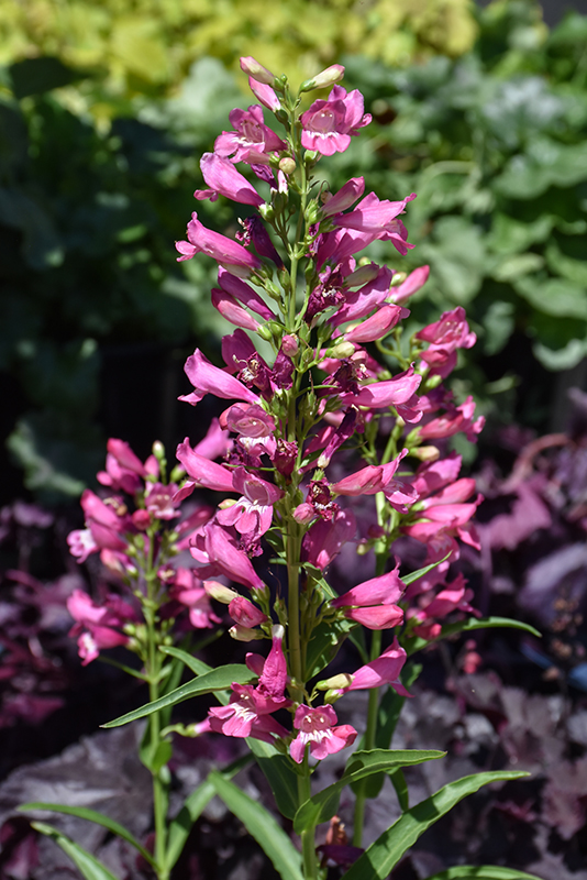 A lovely penstemon with gorgeous pink flowers rising above green foliage; makes a beautiful visual impact when massed in the garden, along walkways, or in borders