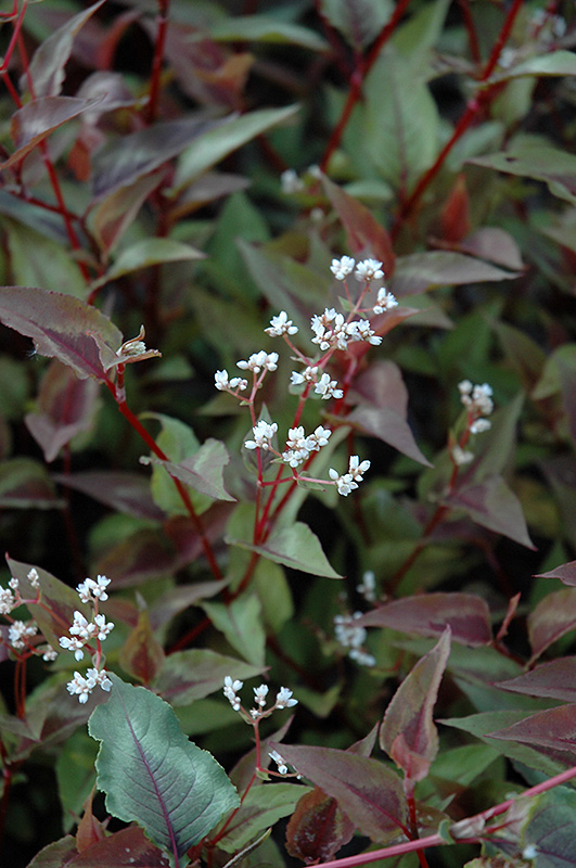Chocolate Dragon Fleeceflower's attractive large pointy leaves remain burgundy in colour with prominent silver stripes throughout the season on a plant with a mounded habit of growth. It has masses of beautiful spikes of white flowers rising above the foliage from early summer to early fall, which are most effective when planted in groupings. The flowers are excellent for cutting.
