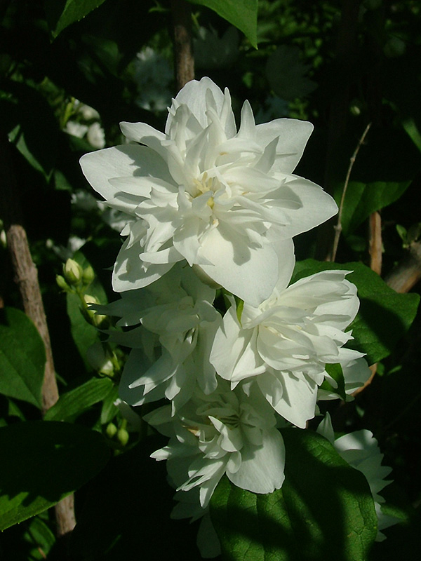 A stunning flowering shrub covered in lovely citrus scented double white blooms in late spring; spectacular in flower, fades to the background the rest of the year, use in conjunction with other plants; very adaptable, good form for a mockorange