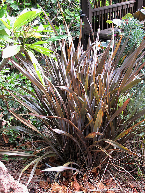 Platt's Black New Zealand Flax will grow to be about 4 feet tall at maturity, with a spread of 4 feet. When grown in masses or used as a bedding plant, individual plants should be spaced approximately 4 feet apart. Although it's not a true annual, this plant can be expected to behave as an annual in our climate if left outdoors over the winter, usually needing replacement the following year. As such, gardeners should take into consideration that it will perform differently than it would in its native habitat.
