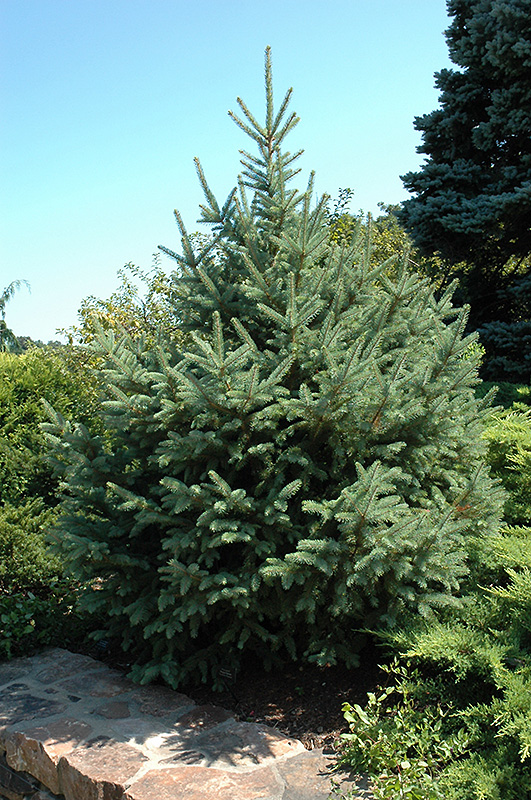 Dragon Spruce is a dense evergreen tree with a strong central leader and a distinctive and refined pyramidal form. Its relatively fine texture sets it apart from other landscape plants with less refined foliage.