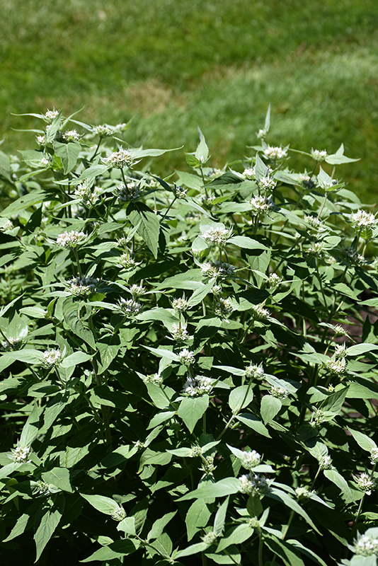 Hoary Mountain Mint will grow to be about 3 feet tall at maturity, with a spread of 4 feet. When grown in masses or used as a bedding plant, individual plants should be spaced approximately 4 feet apart. It grows at a fast rate, and under ideal conditions can be expected to live for approximately 5 years. As an herbaceous perennial, this plant will usually die back to the crown each winter, and will regrow from the base each spring. Be careful not to disturb the crown in late winter when it may not be readily seen!