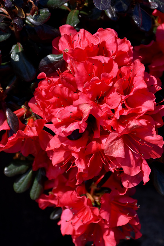 A stunning variety with extraordinary carmine-red blooms that cover the branches in spring; glossy green foliage turns deep red-purple in fall; absolutely must have well-drained, highly acidic and organic soil, use plenty of peat moss when planting