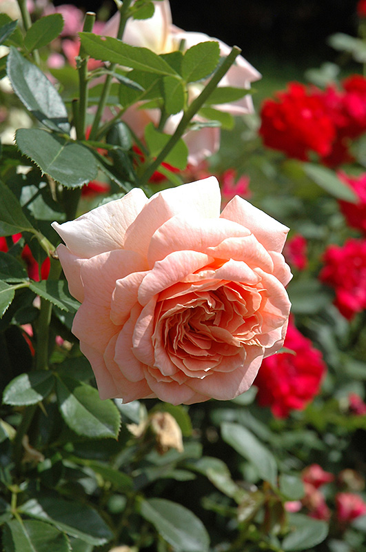 An extraordinary shrub rose that features abundant peach-pink flowers with a fruity fragrance all season; compact, upright habit, quite adaptable and resistant to disease, a valuable garden shrub; all roses need full sun and well-drained soil