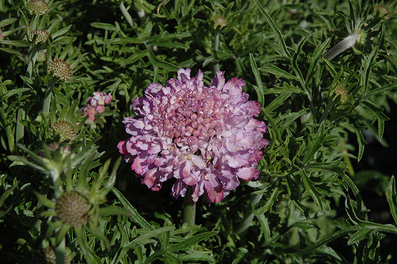 Harlequin Blue Pincushion Flower is an herbaceous perennial with tall flower stalks held atop a low mound of foliage. It brings an extremely fine and delicate texture to the garden composition and should be used to full effect.