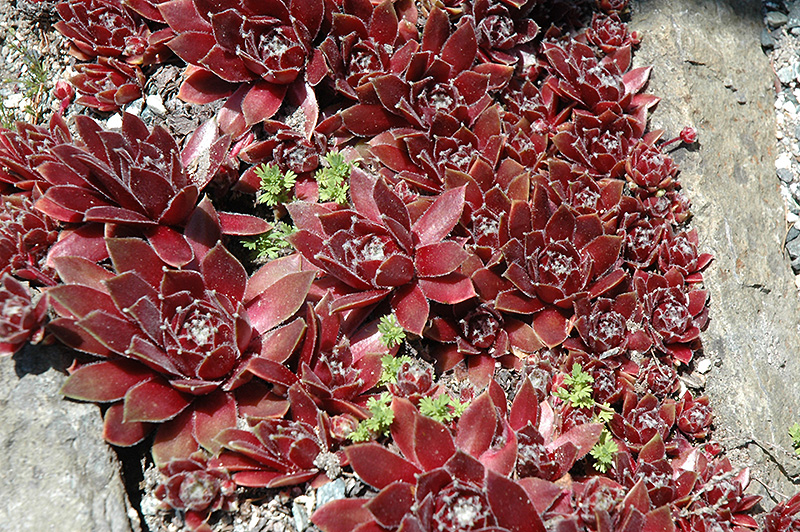 Donnarose Hens And Chicks will grow to be only 3 inches tall at maturity extending to 8 inches tall with the flowers, with a spread of 12 inches. When grown in masses or used as a bedding plant, individual plants should be spaced approximately 10 inches apart. Its foliage tends to remain low and dense right to the ground. It grows at a medium rate, and under ideal conditions can be expected to live for approximately 20 years. As an herbaceous perennial, this plant will usually die back to the crown each winter, and will regrow from the base each spring. Be careful not to disturb the crown in late winter when it may not be readily seen!