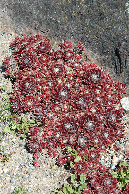 Jubilee Hens And Chicks will grow to be only 3 inches tall at maturity extending to 10 inches tall with the flowers, with a spread of 12 inches. When grown in masses or used as a bedding plant, individual plants should be spaced approximately 10 inches apart. Its foliage tends to remain low and dense right to the ground. It grows at a medium rate, and under ideal conditions can be expected to live for approximately 20 years. As an herbaceous perennial, this plant will usually die back to the crown each winter, and will regrow from the base each spring. Be careful not to disturb the crown in late winter when it may not be readily seen!