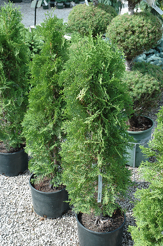 A characteristically narrow and spire-like evergreen for home landscape use; dense foliage remains bright year round; grows quite tall, makes a stunning vertical accent that is hardy and adaptable; takes pruning well; best with some sun