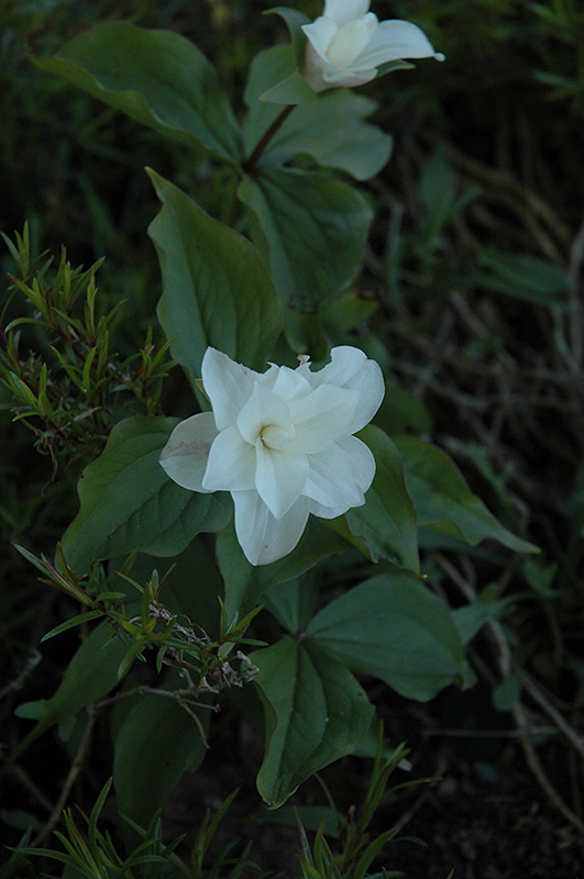 A remarkable and rare double petaled form of trillium; creates an elegant floral presentation in a woodland garden in spring; will make a nice sized clump in rich, well fertilized soil; needs two or three years to bloom