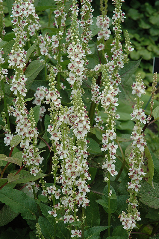 Wedding Candles Mullein has masses of beautiful spikes of white flowers with purple eyes and orange anthers rising above the foliage from late spring to mid summer, which are most effective when planted in groupings. The flowers are excellent for cutting. Its oval leaves remain grayish green in colour throughout the season.