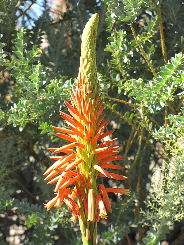Variegated Candelabra Aloe features showy racemes of red flowers rising above the foliage from late winter to late fall. Its succulent sword-like leaves remain bluish-green in colour with showy buttery yellow variegation throughout the season.