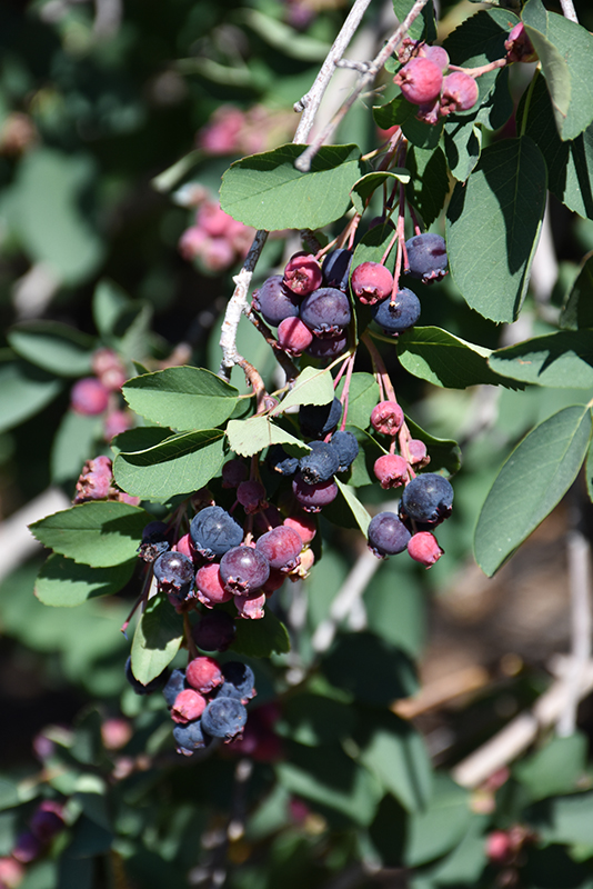 Utah Serviceberry will grow to be about 15 feet tall at maturity, with a spread of 10 feet. It tends to be a little leggy, with a typical clearance of 2 feet from the ground, and is suitable for planting under power lines. It grows at a medium rate, and under ideal conditions can be expected to live for approximately 25 years. This is a self-pollinating variety, so it doesn't require a second plant nearby to set fruit.