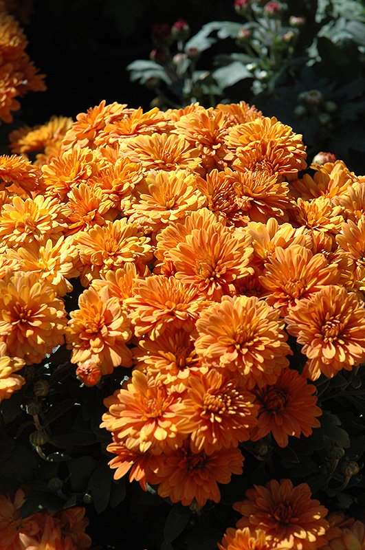 Delightful Victoria Chrysanthemum is covered in stunning double orange daisy flowers with coppery-bronze overtones at the ends of the stems from early to late fall. The flowers are excellent for cutting. Its fragrant ferny leaves remain dark green in colour throughout the season.