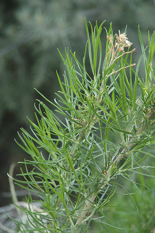 This rugged shrub produces pungent golden-yellow flowers in late summer to early fall; grassy narrow leaves grace an open and airy habit; may cut back in spring to increase ornamental value; tough and drought tolerant