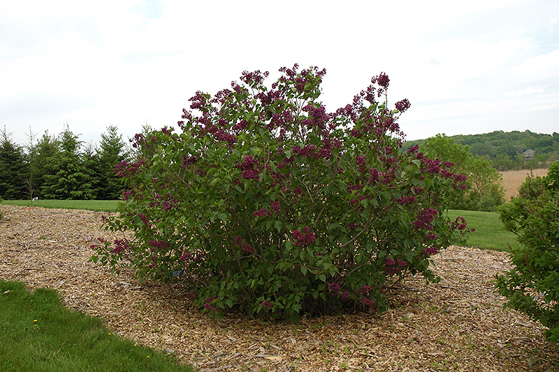 Sarah Sands Lilac features showy panicles of fragrant burgundy flowers rising above the foliage in mid spring, which emerge from distinctive deep purple flower buds. The flowers are excellent for cutting. It has bluish-green deciduous foliage. The heart-shaped leaves do not develop any appreciable fall colour.