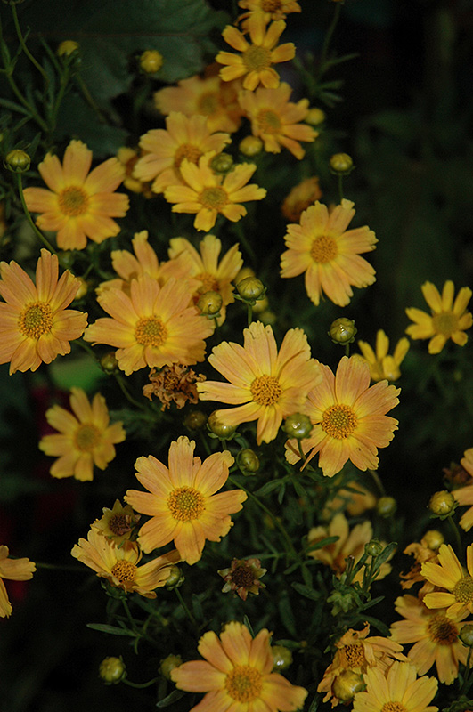 Sweet Marmalade Tickseed will grow to be about 14 inches tall at maturity, with a spread of 20 inches. Its foliage tends to remain dense right to the ground, not requiring facer plants in front. It grows at a medium rate, and under ideal conditions can be expected to live for approximately 8 years. As an herbaceous perennial, this plant will usually die back to the crown each winter, and will regrow from the base each spring. Be careful not to disturb the crown in late winter when it may not be readily seen!