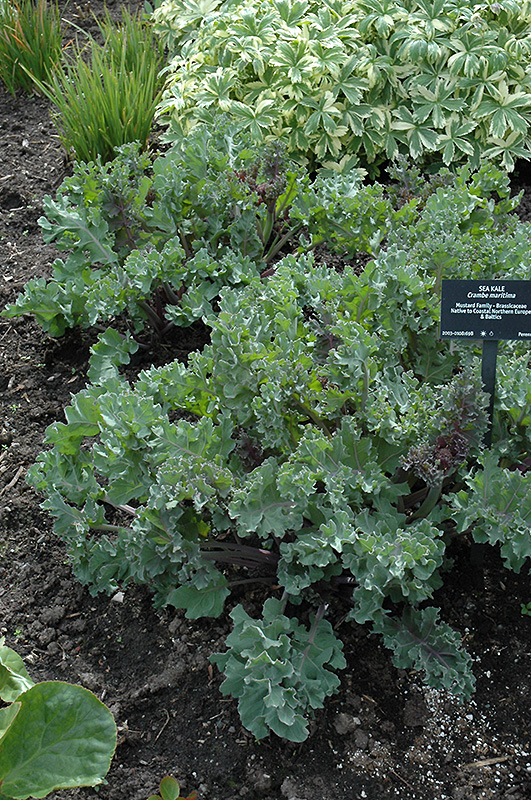 Sea Kale will grow to be about 24 inches tall at maturity, with a spread of 24 inches. Its foliage tends to remain dense right to the ground, not requiring facer plants in front. It grows at a fast rate, and under ideal conditions can be expected to live for approximately 10 years. As an herbaceous perennial, this plant will usually die back to the crown each winter, and will regrow from the base each spring. Be careful not to disturb the crown in late winter when it may not be readily seen!