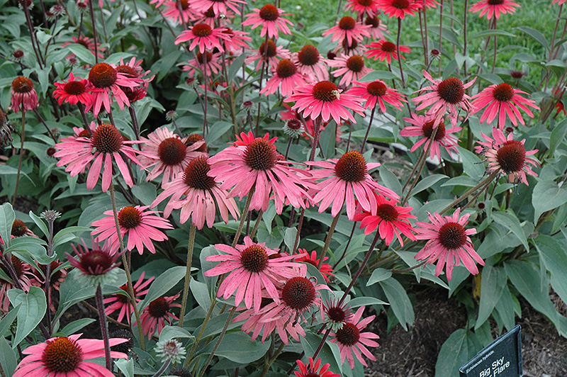 Big Sky™ Solar Flare Coneflower has masses of beautiful lightly-scented hot pink daisy flowers with orange overtones, coppery-bronze eyes and scarlet streaks at the ends of the stems from mid summer to mid fall, which are most effective when planted in groupings. The flowers are excellent for cutting. Its pointy leaves remain green in colour throughout the season.