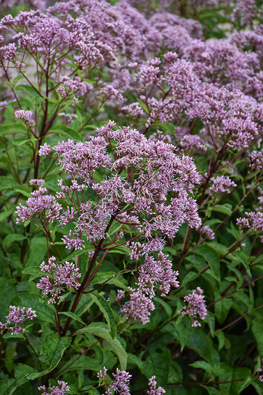 Phantom Joe Pye Weed will grow to be about 30 inches tall at maturity, with a spread of 3 feet. When grown in masses or used as a bedding plant, individual plants should be spaced approximately 24 inches apart. It grows at a medium rate, and under ideal conditions can be expected to live for approximately 15 years. As an herbaceous perennial, this plant will usually die back to the crown each winter, and will regrow from the base each spring. Be careful not to disturb the crown in late winter when it may not be readily seen!