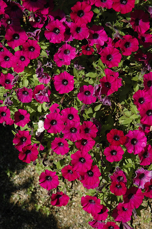 Littletunia Shiraz Petunia will grow to be about 12 inches tall at maturity, with a spread of 12 inches. When grown in masses or used as a bedding plant, individual plants should be spaced approximately 10 inches apart. Its foliage tends to remain dense right to the ground, not requiring facer plants in front. This fast-growing annual will normally live for one full growing season, needing replacement the following year.