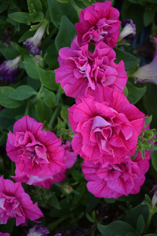 SweetSunshine Hot Pink Petunia is clothed in stunning semi-double hot pink trumpet-shaped flowers at the ends of the stems from mid spring to mid fall. Its pointy leaves remain green in colour throughout the season.