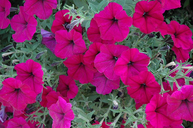 Suncatcher Burgundy Petunia will grow to be about 12 inches tall at maturity, with a spread of 18 inches. When grown in masses or used as a bedding plant, individual plants should be spaced approximately 15 inches apart. Its foliage tends to remain dense right to the ground, not requiring facer plants in front. This fast-growing annual will normally live for one full growing season, needing replacement the following year.