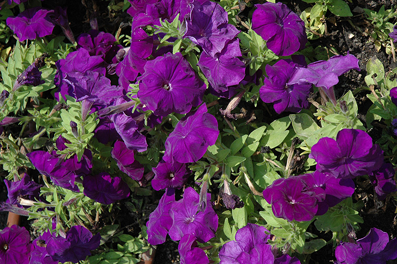 Espresso® Mid Blue Petunia will grow to be about 8 inches tall at maturity, with a spread of 16 inches. When grown in masses or used as a bedding plant, individual plants should be spaced approximately 12 inches apart. Its foliage tends to remain low and dense right to the ground. This fast-growing annual will normally live for one full growing season, needing replacement the following year.