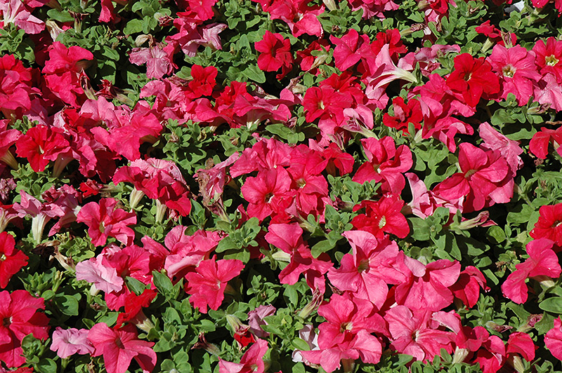 EZ Rider Deep Salmon Petunia will grow to be about 10 inches tall at maturity, with a spread of 12 inches. When grown in masses or used as a bedding plant, individual plants should be spaced approximately 10 inches apart. Its foliage tends to remain low and dense right to the ground. This fast-growing annual will normally live for one full growing season, needing replacement the following year.