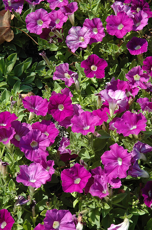 Whispers Amethyst Petunia will grow to be about 12 inches tall at maturity, with a spread of 24 inches. When grown in masses or used as a bedding plant, individual plants should be spaced approximately 20 inches apart. Its foliage tends to remain dense right to the ground, not requiring facer plants in front. This fast-growing annual will normally live for one full growing season, needing replacement the following year.