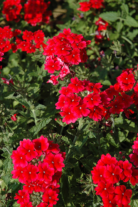 Empress™ Strawberry Verbena features showy clusters of cherry red star-shaped flowers at the ends of the stems from late spring to mid fall. The flowers are excellent for cutting. Its tiny tomentose narrow leaves remain green in colour throughout the season.