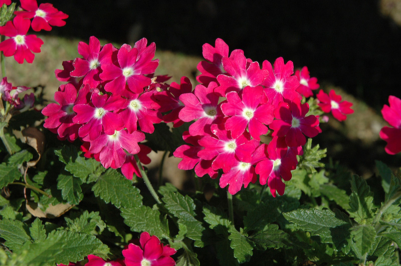 Lanai® Upright Rose with Eye Verbena will grow to be about 16 inches tall at maturity, with a spread of 16 inches. When grown in masses or used as a bedding plant, individual plants should be spaced approximately 12 inches apart. Its foliage tends to remain dense right to the ground, not requiring facer plants in front. Although it's not a true annual, this fast-growing plant can be expected to behave as an annual in our climate if left outdoors over the winter, usually needing replacement the following year. As such, gardeners should take into consideration that it will perform differently than it would in its native habitat.