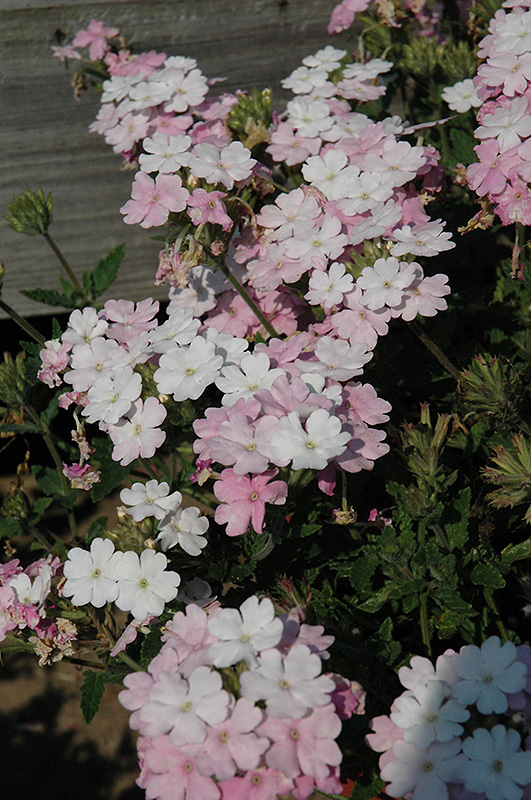 Enduro White Blush Verbena will grow to be about 12 inches tall at maturity, with a spread of 20 inches. When grown in masses or used as a bedding plant, individual plants should be spaced approximately 15 inches apart. Its foliage tends to remain dense right to the ground, not requiring facer plants in front. Although it's not a true annual, this fast-growing plant can be expected to behave as an annual in our climate if left outdoors over the winter, usually needing replacement the following year. As such, gardeners should take into consideration that it will perform differently than it would in its native habitat.