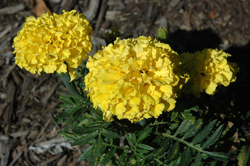 Christy Yellow Marigold features bold fully double yellow ball-shaped flowers at the ends of the stems from early summer to mid fall. The flowers are excellent for cutting. Its fragrant ferny leaves remain dark green in colour throughout the season.