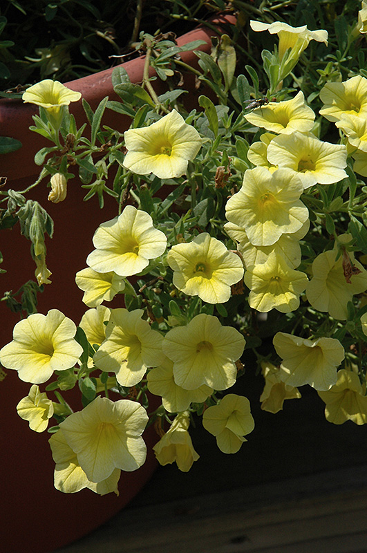 Million Bells® Bouquet Cream Calibrachoa is a fine choice for the garden, but it is also a good selection for planting in outdoor containers and hanging baskets. Because of its trailing habit of growth, it is ideally suited for use as a 'spiller' in the 'spiller-thriller-filler' container combination; plant it near the edges where it can spill gracefully over the pot. Note that when growing plants in outdoor containers and baskets, they may require more frequent waterings than they would in the yard or garden.