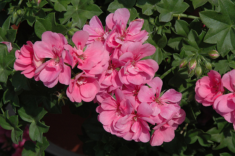 Royal Light Pink Ivy Leaf Geranium features bold clusters of lightly-scented shell pink flowers at the ends of the stems from late spring to early fall. The flowers are excellent for cutting. Its serrated pointy palmate leaves remain green in colour throughout the year.