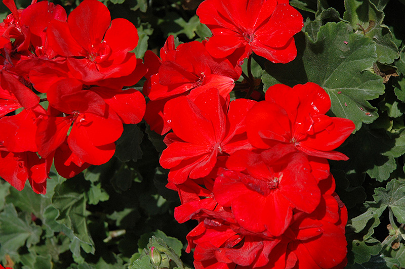 Savannah Carmine Geranium features bold balls of lightly-scented cherry red flowers at the ends of the stems from late spring to early fall. The flowers are excellent for cutting. Its tomentose round palmate leaves remain green in colour with prominent brown stripes throughout the year.