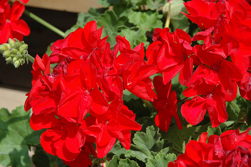 Sunrise Bright Red Geranium is a fine choice for the garden, but it is also a good selection for planting in outdoor containers and hanging baskets. It is often used as a 'filler' in the 'spiller-thriller-filler' container combination, providing a mass of flowers against which the larger thriller plants stand out. Note that when growing plants in outdoor containers and baskets, they may require more frequent waterings than they would in the yard or garden.
