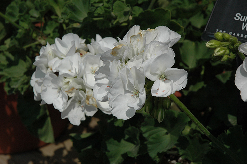Sunrise XL White Geranium is a fine choice for the garden, but it is also a good selection for planting in outdoor containers and hanging baskets. It is often used as a 'filler' in the 'spiller-thriller-filler' container combination, providing a mass of flowers against which the larger thriller plants stand out. Note that when growing plants in outdoor containers and baskets, they may require more frequent waterings than they would in the yard or garden.