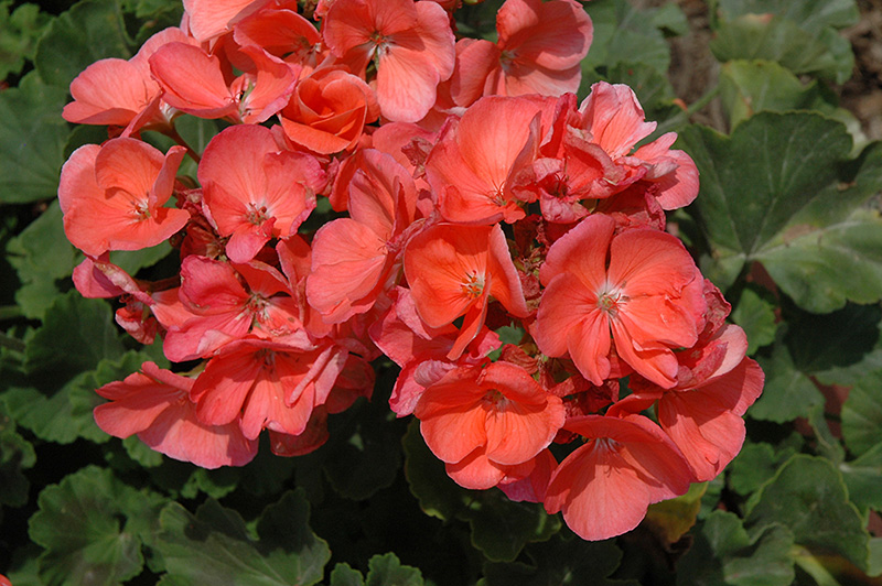 Survivor Salmon Geranium features bold balls of lightly-scented salmon flowers at the ends of the stems from late spring to early fall. The flowers are excellent for cutting. Its tomentose round palmate leaves remain green in colour with prominent brown stripes throughout the year.
