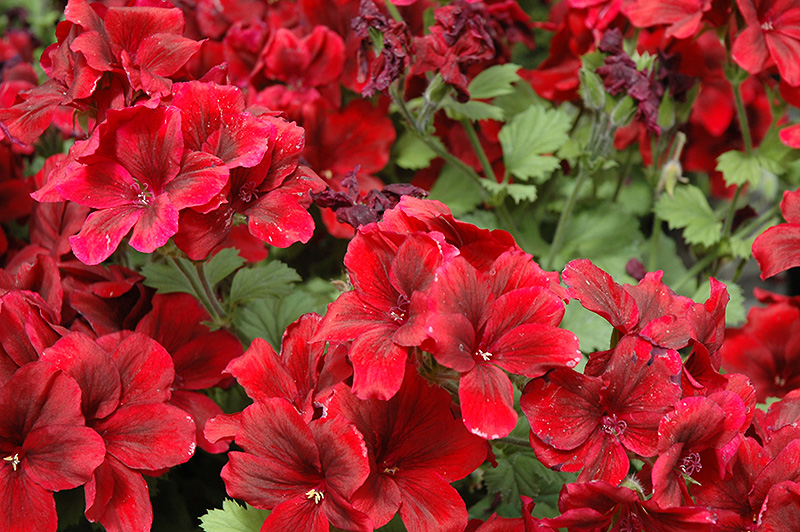 Aristo Velvet Red Geranium will grow to be about 15 inches tall at maturity, with a spread of 12 inches. When grown in masses or used as a bedding plant, individual plants should be spaced approximately 10 inches apart. Its foliage tends to remain dense right to the ground, not requiring facer plants in front. Although it's not a true annual, this fast-growing plant can be expected to behave as an annual in our climate if left outdoors over the winter, usually needing replacement the following year. As such, gardeners should take into consideration that it will perform differently than it would in its native habitat.