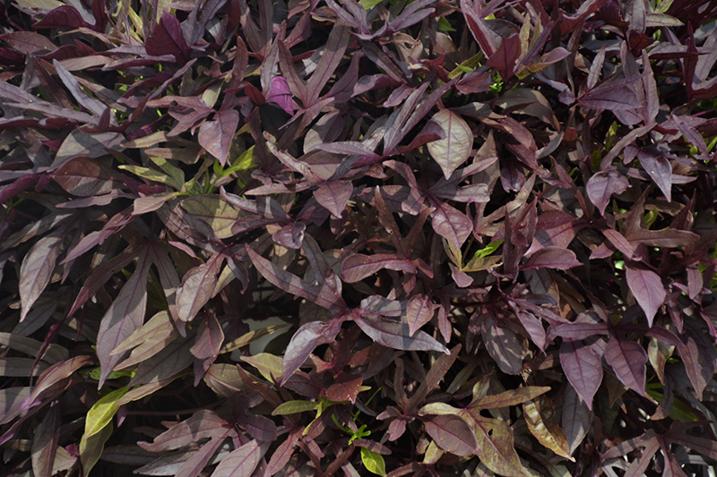 Illusion Garnet Lace Sweet Potato Vine will grow to be about 8 inches tall at maturity, with a spread of 4 feet. Its foliage tends to remain low and dense right to the ground. This fast-growing annual will normally live for one full growing season, needing replacement the following year.