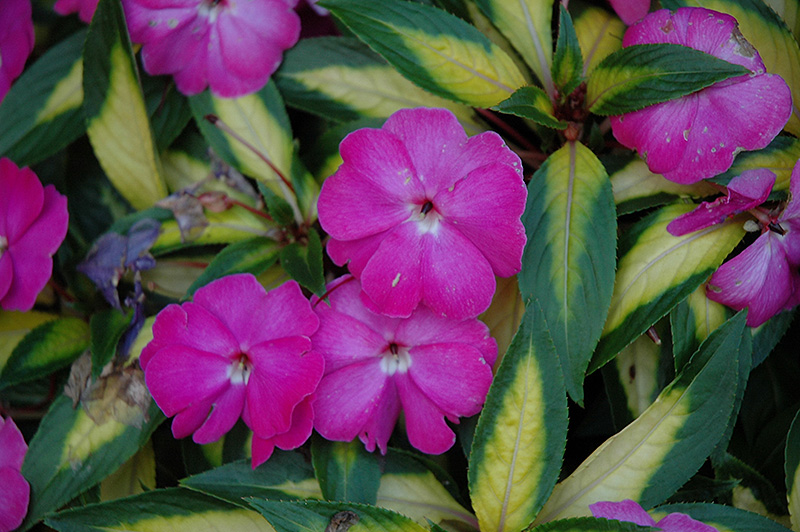Striking like the name suggests, this variety features eye-catching variegated foliage, topped with large, colorful blooms; early to flower and shade tolerant, great for garden beds, borders, hanging baskets or containers; low maintenance and easy to grow