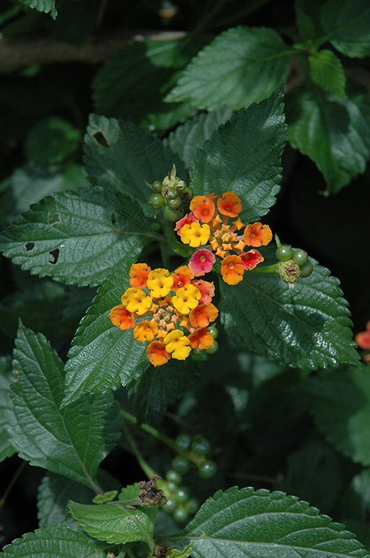 Ham And Eggs Lantana is a multi-stemmed annual with a ground-hugging habit of growth. Its medium texture blends into the garden, but can always be balanced by a couple of finer or coarser plants for an effective composition.