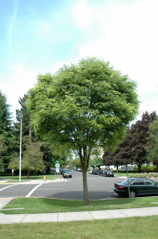 A close relative of the elm, a tall, upright shade tree with a vase-shaped habit, fast growing; interesting peeling bark and good fall color; low maintenance and trouble-free, an excellent choice for street plantings or larger landscapes